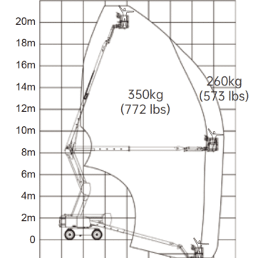 LGMG AR20JE är en elektrisk bomlift med litiumbatterier och ledad arm. Bomliften är utrustad med mycket god räckvidd och garanterar god effektivitet under arbetet. Den är utpräglat bra i terräng och är designad för att klara arbete och körning i krävande terräng, samtidigt som den bibehåller samma effektivitet.